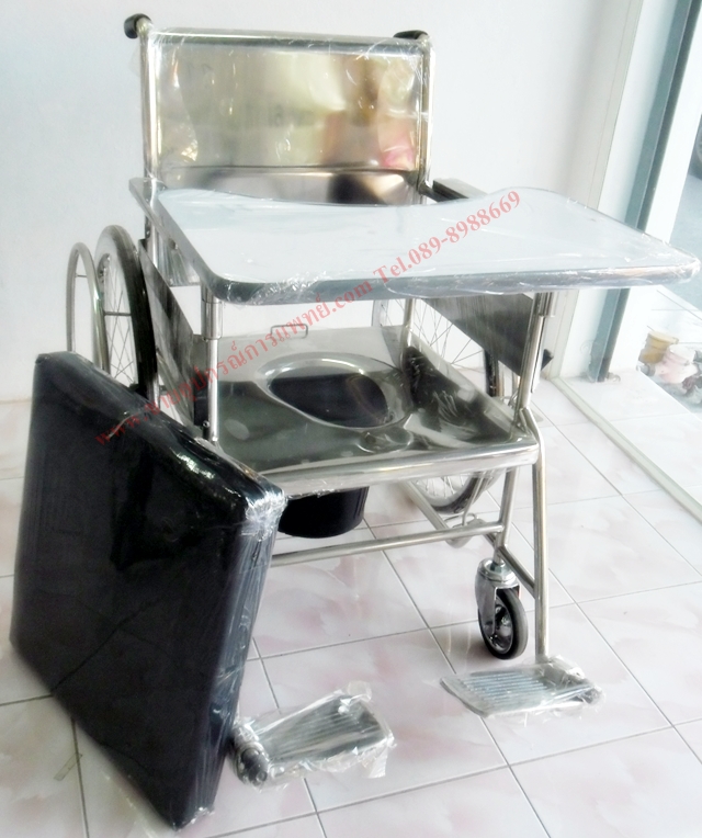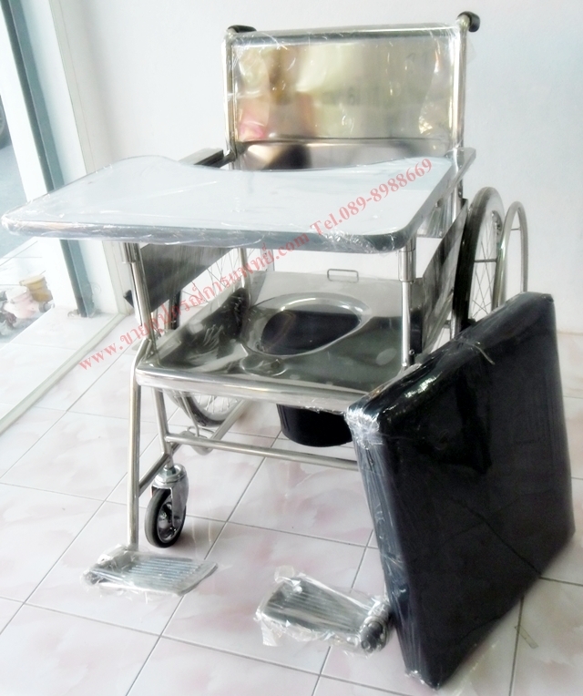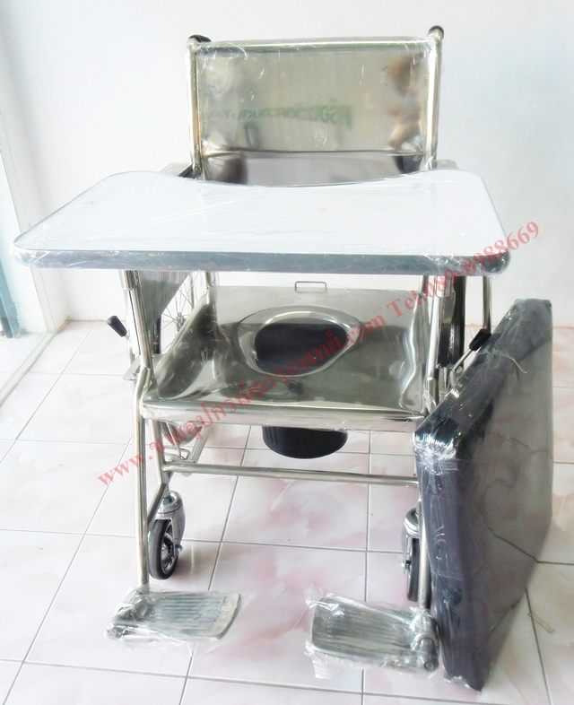 รถเข็นนั่งถ่ายสแตนเลส -นั่งอาบน้ำได้ ไม่เป็นสนิม พร้อมถาดวางอาหารบนรถเข็น H