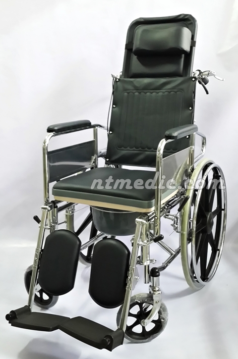 NT1427 รถเข็นนั่งถ่ายผู้ป่วยแบบปรับเอนนอนได้+กระโถน+เบาะรองนั่ง