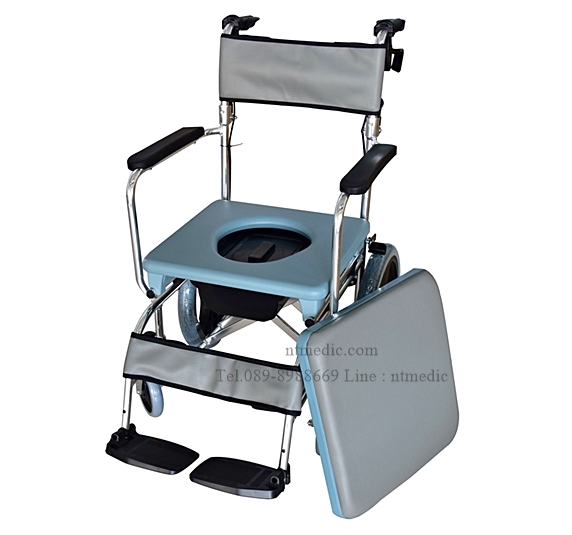 NT1525 เก้าอี้รถเข็นนั่งถ่ายผู้ป่วยมีล้อ เบาะนิ่ม โครงอัลลอดย์
