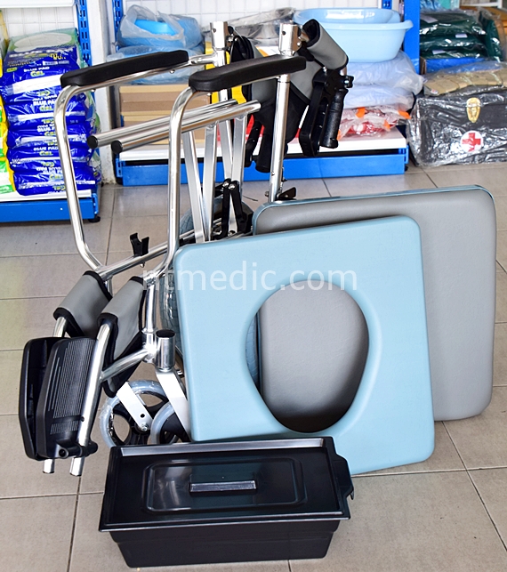 NT1427 รถเข็นนั่งถ่ายผู้ป่วยแบบปรับเอนนอนได้+กระโถน+เบาะรองนั่ง