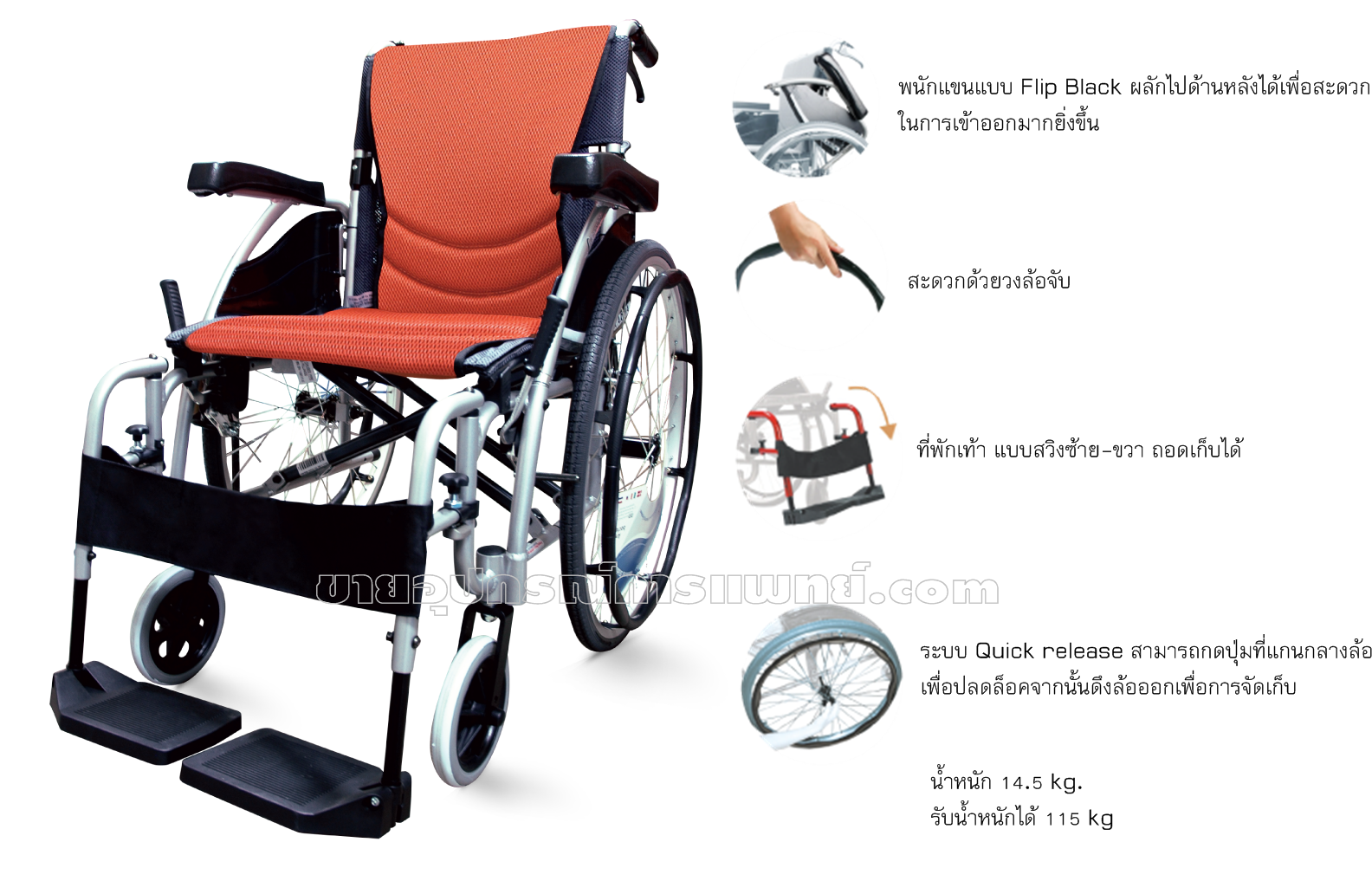 NT1225 รถเข็นผู้ป่วยอัลลอยด์ถอดล้อได้ KARMA S-ERGO 125