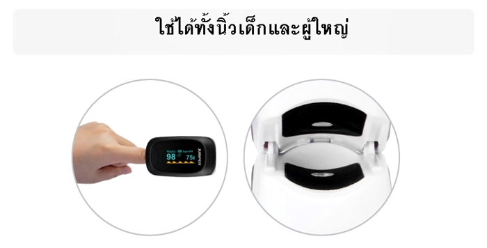 ใช้วัดความอิ่มตัวของออกซิเจนในเลือด และอัตราการเต้นของหัวใจ ทางนิ้วมือ