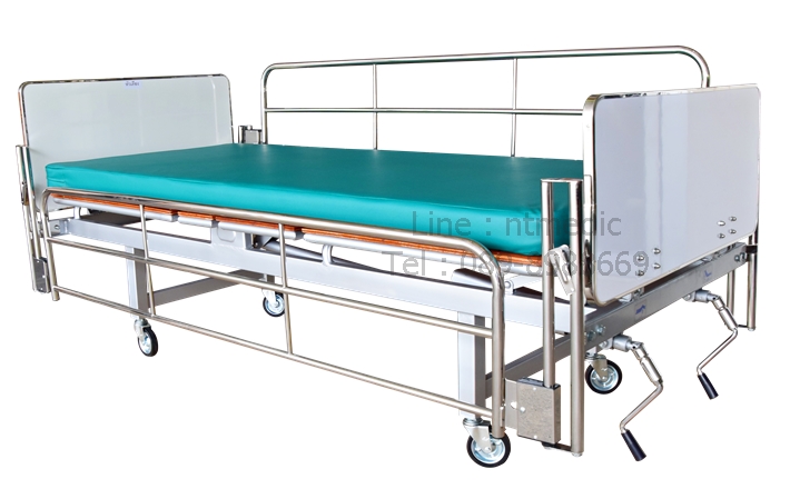 NT1053 เตียงผู้ป่วย 3 ไกร์มือหมุนราวกั้นเตียงสแตนเลส เตียงคนไข้ 3 ไกร์